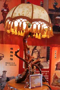 根藝燈飾與普通燈飾具有同樣的實用性,但比普通燈飾更具特色和優(yōu)點。其主要表現(xiàn)在:更具觀賞性,裝飾性,收藏性,首先每個根藝燈飾都是唯一性存在的,這一點是工業(yè)燈飾是不可能做到的。其次就是根藝燈飾取材于天然樹根為原材料,具有天然的藝術(shù)價值。第三、根雕燈飾更具有收藏價值,工業(yè)制造燈飾由于材料及制作工藝的原因容易老化和損壞,也容易隨著工業(yè)的發(fā)展而被淘汰。而根藝臺燈由于其天然的藝術(shù)性,隨著時間的推移更具有可觀的升值潛力。第四、根藝臺燈更符合現(xiàn)代人所追求的綠色環(huán)保自然的審美觀念。