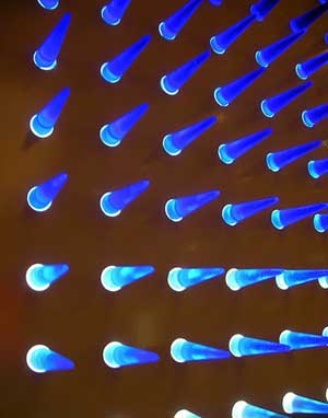 不是某種酷刑使設(shè)計師獲得了這個靈感吧?深藍(lán)的光線以這種形式排列和散發(fā),確有攝人心魄的威力。