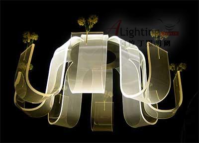 利用加了導光鍍膜的光纖板做成吊燈的造型,配以花邊和花朵做裝飾,營造一種通透精致的美感。光源在中央部位發(fā)散出來的光線通過光纖板均勻有度的散發(fā)到四周,看起來仿佛整個燈體都在發(fā)光,光線與燈體營造出燦若夏花的精致美麗。