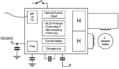 機電一體化和模塊化的方法都得到了單芯片步進電機控制器集成電路的支持,在快速增長的車輛電子系統(tǒng)使得電子系統(tǒng)結(jié)構(gòu)過于復雜和昂貴的情況下,這兩個方法為廣大車輛制造商們所推崇。