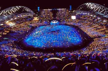 本屆奧運(yùn)會(huì)的比賽是提前開幕式兩天,從9月13日開始的。9月15日的開幕式進(jìn)行得精彩紛呈,而獨(dú)樹一幟的圣火點(diǎn)燃儀式更是將開幕式的熱烈氣氛推向了高潮,點(diǎn)燃圣火的是澳大利亞優(yōu)秀女子短跑運(yùn)動(dòng)員卡茜?弗里曼。在澳大利亞總督威廉?迪恩爵士宣布本屆奧運(yùn)會(huì)開幕后,曲棍球運(yùn)動(dòng)員雷切爾?霍克斯和水球裁判員彼得?克爾分別代表運(yùn)動(dòng)員和裁判員進(jìn)行了宣誓。