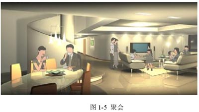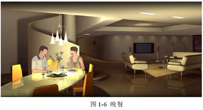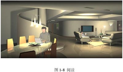 在一定場(chǎng)所或整個(gè)樓宇,用戶預(yù)設(shè)多種場(chǎng)景,按動(dòng)一個(gè)按鍵,即可調(diào)用要的場(chǎng)景。圖1-5至1-8為場(chǎng)景變換狀態(tài)。