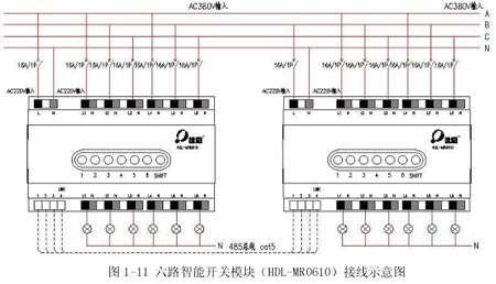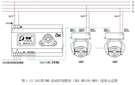 HDL-BUS系統(tǒng)為廣州河?xùn)|電子公司生產(chǎn)的智能照明控制系統(tǒng),不僅有上述功能,該系統(tǒng)采用開放性及高擴(kuò)展性協(xié)議,能使照明系統(tǒng)與樓宇控制系統(tǒng)、消防系統(tǒng)、保安系統(tǒng)、舞臺(tái)燈光系統(tǒng)等實(shí)現(xiàn)無縫聯(lián)接。其接線示意圖見 1-11、1-12、1-13。