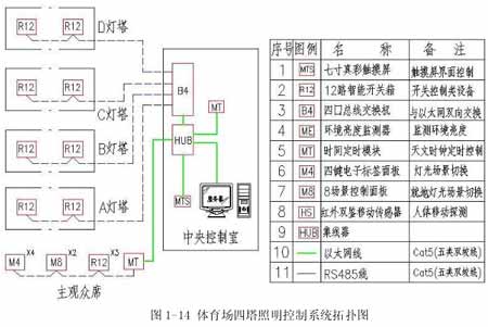 體育場(chǎng)四塔照明控制系統(tǒng)原理見圖1-14、1-15、1-16。
