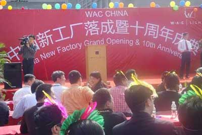 WAC華格照明,在進入中國十年召開慶典之際,遷入了由國內(nèi)著名設計師崔華峰為其設計的中國新工廠及辦公大樓,正可謂雙喜臨門!