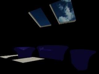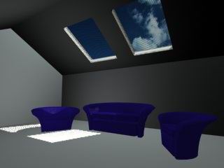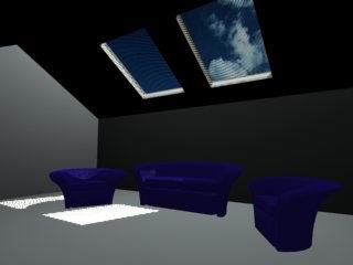 這個場景很簡單,天窗的材質(zhì)是用棋盤格做的,U向重復(fù)100,V向重復(fù)0.001,偏移2.0,然后diffuse和opacity各貼一個就行了。其他沒有什么特別的地方?,F(xiàn)在開始照亮它。