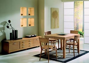 影響廚房色調(diào)的主要因素是廚房家具。為了充分利用空間來發(fā)揮廚房的各個功能區(qū)的作用,采用的各種布局形式,都會占有墻立面醒目的位置。為各個工作中心的主要設(shè)施以及為之完善的配套家具,都有占據(jù)室內(nèi)空間的造型,所余空的墻面較少。因此,當確定了這些家具的色調(diào)時,也就等于確定了廚房的主調(diào)。天棚和地面等均可服從于家具的色調(diào)來選擇相應的配色,以天棚和地面的配色協(xié)調(diào)于家具,或者等同于家具,地面還可以選用等同于墻面的色彩或放樣花飾來處理,會有延伸空間的感覺。