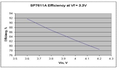 圖5:實(shí)際測試的SP7611A效率曲線。