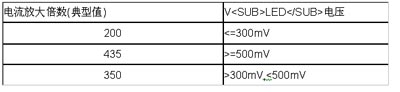 表:電流放大倍數(shù)與VLED的關(guān)系。