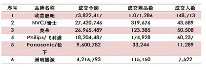 2014天貓雙十一照明企業(yè)銷售前6名榜單
