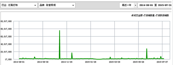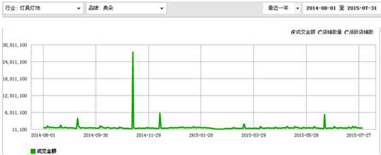 2014年8月到2015年7月,歐普照明有關(guān)燈具燈飾的天貓銷售情況。