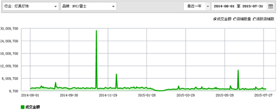 2014年8月到2015年7月,雷士有關(guān)燈具燈飾的天貓銷售情況。