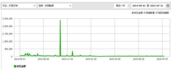 2014年8月到2015年7月,洲明翰源有關(guān)燈具燈飾的天貓銷售情況。