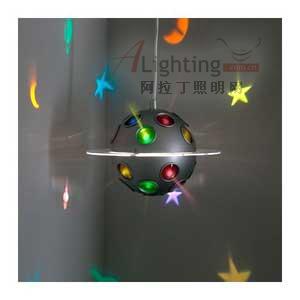 宇宙飛船式的吊燈,每個(gè)孔都能投射出不同的光影效果,各色各形的月亮、星星等光線,給兒童帶來無限想象空間。