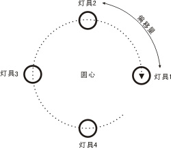 l OFFSET% 為位置偏移量,使得各電腦燈在該圖形中的位置不同。如當偏移量為50%的圓形,則燈具1將是圖形的帶頭,燈具2在它后面的半圓中,燈具3與燈具1將重合。又如:當偏移量為25%的圓形,則燈具1將是圖形的帶頭,燈具2在它后面的1/4圓中,如此類推,燈具5與燈具1將重合。