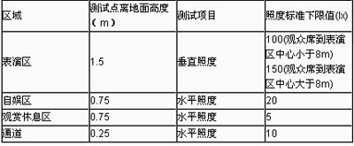 歌舞廳場(chǎng)內(nèi)的區(qū)域可分為表演區(qū)(舞臺(tái))、自?shī)蕝^(qū)(舞池)、觀賞休息區(qū)(席座區(qū))和通道四部分。歌舞廳照明系統(tǒng)必須符合我國(guó)文化部行業(yè)標(biāo)準(zhǔn)(WH0201-94)中的歌舞廳照明及燈光污染限定標(biāo)準(zhǔn)。具體說(shuō)來(lái),歌舞廳照明系統(tǒng)至少要達(dá)到WH0201-94標(biāo)準(zhǔn)規(guī)定的照明標(biāo)準(zhǔn)下限值(參見附表);對(duì)激光、紫外線和頻閃的限制是:激光一般不應(yīng)射向人體,尤其是眼部,直接照射或經(jīng)反射后間接射向人體時(shí),其波長(zhǎng)必須在380~780nm之間,最大容許輻射量為1.4×10-6Wcm-2;紫外線波長(zhǎng)必須在320~380nm之間,最大容許輻射量為8.7×10-6Wcm-2;頻閃頻率要低于6Hz,頻閃燈具不宜長(zhǎng)時(shí)間連續(xù)使用。