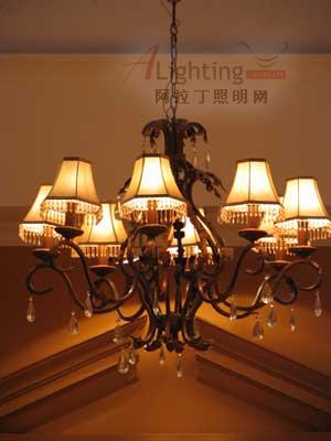吊燈用于居室的分單頭吊燈和多頭吊燈兩種。前者多用于臥室、餐廳;后者宜裝在客廳里。吊燈有乳白燈罩,將磨砂燈泡裝在罩內(nèi),光線散射柔和。另一種是罩口朝下,燈光直接照射于室內(nèi),顯得光燦明亮。還有一種是罩口向上,燈光照到頂棚天花板上,然后反射下來,讓人覺得柔和輕松。
