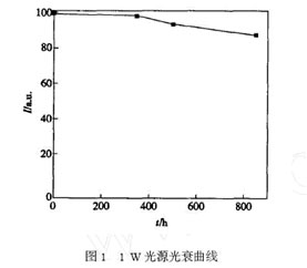 基于多芯片集成的大功率白光LED,國內(nèi)已有幾家公司在研究開發(fā),部分產(chǎn)品已經(jīng)上市。本文在大量試驗(yàn)研究的基礎(chǔ)上,主要針對集成功率型白光LED的老化特性、光品質(zhì)以及相關(guān)驅(qū)動技術(shù)進(jìn)行具體闡述。