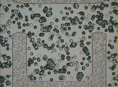 本實(shí)驗(yàn)選用通過(guò)MOCVD方法在2英寸藍(lán)寶石襯底上生長(zhǎng)的GaN外延片,其波長(zhǎng)范圍在465-470nm,選用85%濃H3PO4為腐蝕介質(zhì),在180℃-230℃ 之間,將GaN材料腐蝕5-20分鐘。采用SIGNATONES-1160顯微鏡觀察不同溫度及不同腐蝕時(shí)間對(duì)表面形貌的影響,尋找優(yōu)化的腐蝕條件,同時(shí)將經(jīng)過(guò)表面處理的外延片制作成325um×375um的芯片,測(cè)試并對(duì)比其表面粗化前后光電性能變化。