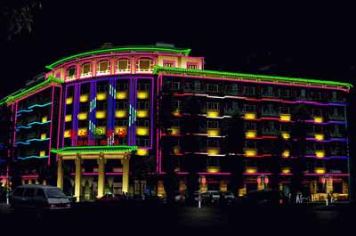 四、主要的應(yīng)用場合及可實現(xiàn)的效果:LED輪廓燈通過微芯片的控制,可以實現(xiàn)漸變、跳變、色彩閃爍、隨機閃爍、漸變交替、追逐、掃描等流動效果,還可以通過DMX的控制,組合成屏,實現(xiàn)文字、圖案的變化效果,目前,LED輪廓燈廣泛應(yīng)用于建筑輪廓、立交橋、河道、花園、燈柱等場合,成為了裝飾城市環(huán)境的理想選擇;