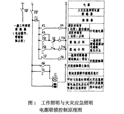 圖 1 為某一樓層的一般工作照明與火災(zāi)應(yīng)急照明電源聯(lián)鎖控制的原理圖。