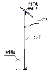 如圖2,系統(tǒng)由太陽能電池組件部分(包括支架)、LED燈頭、控制箱(內(nèi)有控制器、蓄電池)和燈桿幾部分構(gòu)成;