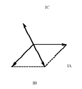 各項負荷相等,矢量和等于零,見圖3,N線上有無電流?回答是這樣的,1#箱到變壓器之間的N上無電流,而1#箱到2#箱,2#箱到3#箱之間的N線上有電流。這是因為1#箱到變壓器之間三相負荷平衡而1#箱后局部三相負荷不平衡,這可以對1#、2#、3#箱進行矢量計算后得出。