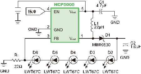 圖1:基于NCP5005的電感式LED驅(qū)動電路