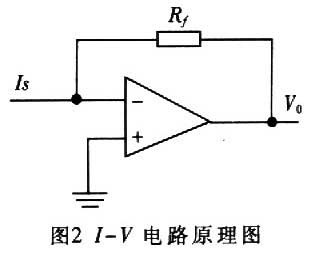 微電流信號(hào)源可以看作是內(nèi)阻非常大的電流源IS,具有接地端的微電流測(cè)量原理如圖2所示。對(duì)于輸入阻抗和放大倍數(shù)均無窮大的理想運(yùn)算放大器來講,輸出電壓V0=ISRf。理論上,只要電阻Rf取得足夠大,即使電流IS很小,也可得到較大的輸出電壓V0。