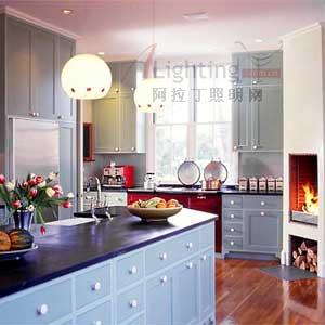 第六,如果廚房空間夠高(2.7m),可以在天花上安裝透明或半透明的吊燈作為光源,吊燈這時不僅可以提供絕佳的照明,還是很好的裝飾物品。