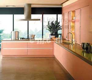 第五,安裝地點也很重要。直線形的白熾燈或者是熒光燈應該安裝在朝向櫥柜的前面部分。這樣,燈發(fā)出的部分光會射向后擋板,然后反射到操作臺上,再射向整個廚房的中心。也可以在櫥柜上方安裝照明裝置用于間接照明,比如小射燈,照在櫥柜的上部,不僅不會刺眼而且還方便取物。