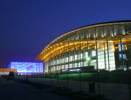 | 燈光下的體育館 | 國(guó)家體育館外觀 | 效果模擬圖對(duì)比 | 燈火通明 | 玻璃幕墻 |