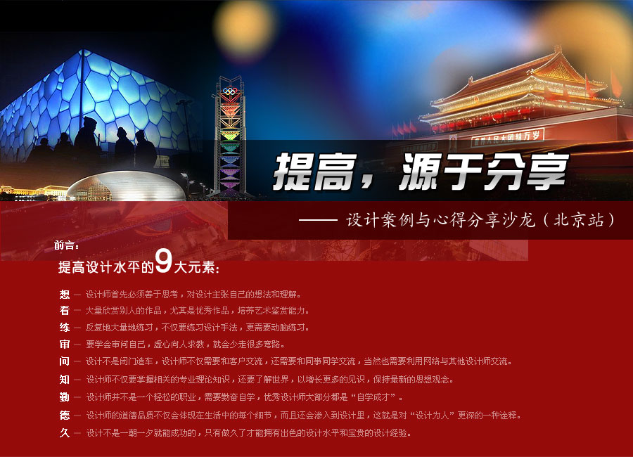 為建立設(shè)計(jì)師面對(duì)面交流學(xué)習(xí)的平臺(tái),協(xié)助設(shè)計(jì)師提高設(shè)計(jì)水平,阿拉丁照明網(wǎng)將在北京舉辦設(shè)計(jì)案例與心得分享沙龍,誠(chéng)邀各大設(shè)計(jì)師共同參與! >>詳細(xì)請(qǐng)點(diǎn)擊