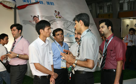 • 美的照明光亞展現(xiàn)場與海外客戶交流
