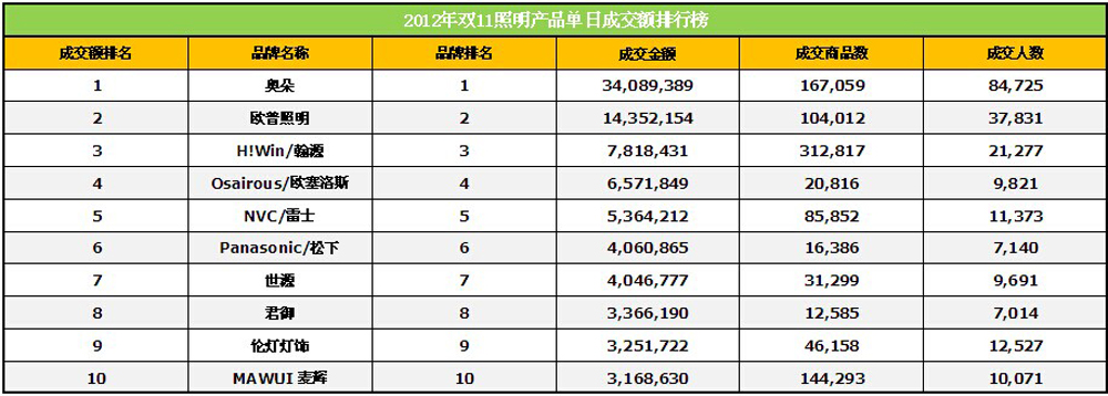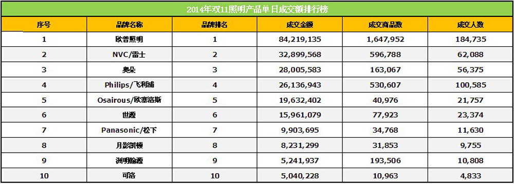 雙十一剛剛塵埃落定,天貓首席運(yùn)營(yíng)官?gòu)堄聢?bào)花絮第一個(gè)就說:雙十一賣出了三百萬(wàn)盞燈??梢?,照明類產(chǎn)品在電商交易中的異軍突起,令人注目。電商渠道日益成為企業(yè)銷售的重要砝碼,飛利浦和歐普兩大傳統(tǒng)巨頭在電商渠道建設(shè)上逐漸加重馬力,其在電商銷售額的不俗表現(xiàn)就可見一斑。而照明電商新品牌翰源、麥輝以及愛德朗在早一兩年領(lǐng)先了一步,但當(dāng)傳統(tǒng)品牌逐漸發(fā)力電商時(shí),在交易額總額上仍然敵不過傳統(tǒng)品牌。歐普以單日9443萬(wàn)元的成交額,成為照明行業(yè)的一支獨(dú)秀。銷售額突破千萬(wàn)元的除了歐普、奧朵、洲明翰源,還有雷士、飛利浦、華藝燈飾等品牌。單日的成交額達(dá)幾千萬(wàn)上億的數(shù)字無疑會(huì)令眾多企業(yè)振奮,雙十一已然成為企業(yè)進(jìn)軍電商的號(hào)角。