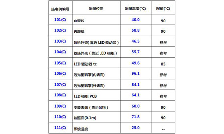 可以看到,產(chǎn)品溫升測(cè)試是合格的。溫度不算高,應(yīng)該是獨(dú)特的散熱器設(shè)計(jì)起到作用,例如LED驅(qū)動(dòng)器盒的導(dǎo)風(fēng)槽工藝應(yīng)該起到良好的散熱作用。良好的散熱能力對(duì)產(chǎn)品壽命起到積極作用。還在于這個(gè)點(diǎn)的溫度一直保持在29.7的恒溫狀態(tài),相對(duì)于普通模組的散熱,具有獨(dú)特優(yōu)勢(shì)...... [詳細(xì)]