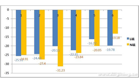 此次樣品功率大于25W,根據(jù)國(guó)際標(biāo)準(zhǔn)EN55015相關(guān)標(biāo)準(zhǔn)進(jìn)行測(cè)試,樣品實(shí)測(cè)最差頻點(diǎn)余量在-13.18~-31.23之間,從最大限度降低輻射干擾強(qiáng)度的角度來看滿足標(biāo)準(zhǔn)要求。
