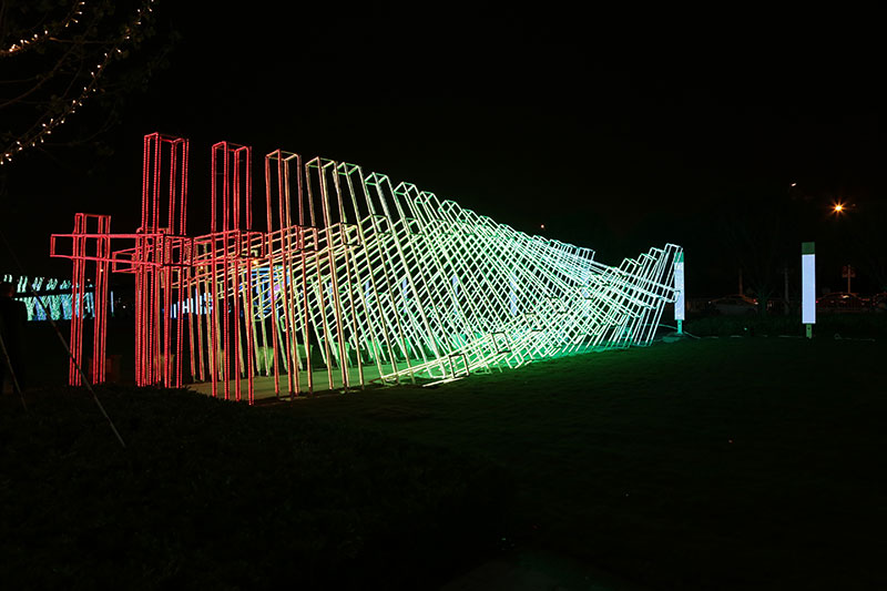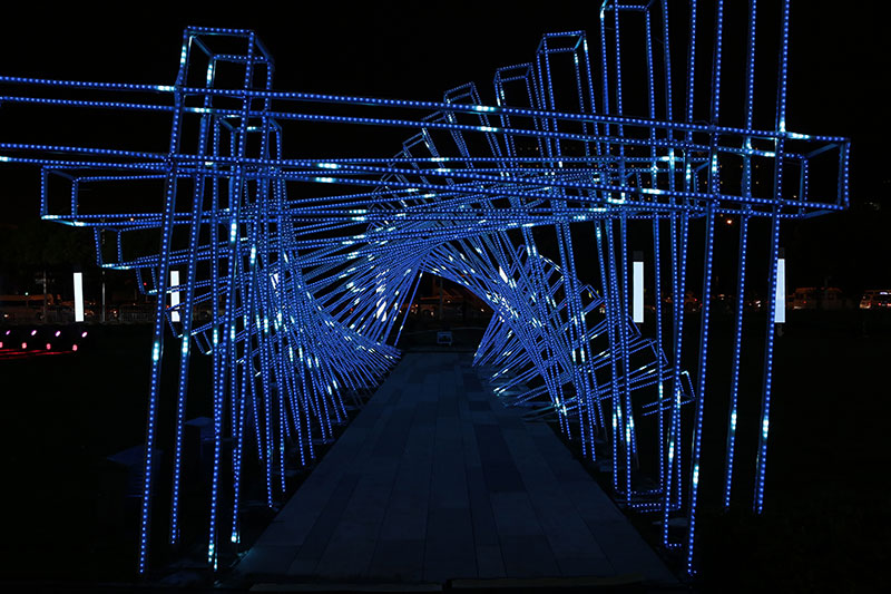 歐普景觀亮化設計師從五維空間中螺旋狀無限延伸的時間層次吸取靈感,創(chuàng)作出“光之通道”,它不僅是光影的通道,更是時光的隧道,更寓意著被智慧照亮的未來。同時,這一立體構(gòu)成的表現(xiàn)手法,也與萬象城打造的“城市立體空間”的概念不謀而合。
