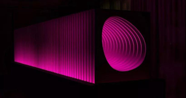 裝置采用PORCELANOSA group 新一代材料krion?制作而成。這個(gè)沉浸式雕塑利用燈光、形態(tài)以及透視關(guān)系進(jìn)行實(shí)驗(yàn),整個(gè)裝置包含64個(gè)固體材質(zhì)制成的片狀結(jié)構(gòu),搭配動(dòng)態(tài)燈光,共同營(yíng)造出獨(dú)特的視覺(jué)體驗(yàn)。