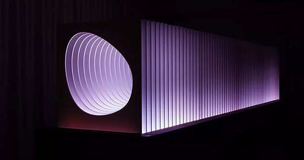裝置可視針對(duì)光圈與燈光展開(kāi)的研究,全部采用這種krion?材料制作,材料觸感溫暖,與天然石材類似,作品標(biāo)志著建筑室內(nèi)設(shè)計(jì)與辦公環(huán)境新的融合。