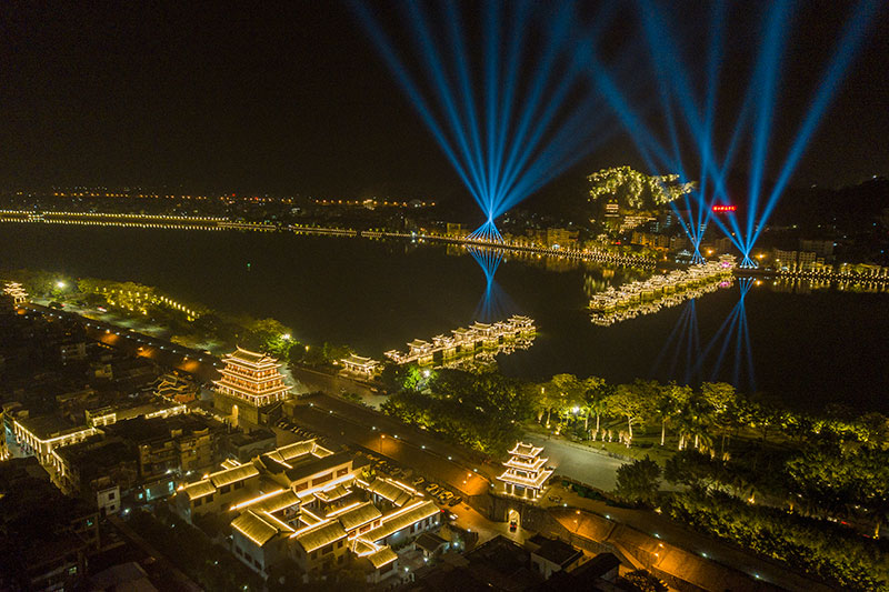 本次亮燈工程的設(shè)計團(tuán)隊曾負(fù)責(zé)G20峰會、杭州西湖夜景,由央視的燈光控制師親自操刀,他們的設(shè)計主題可濃縮為以下四句詩?!耙唤瓋砂度揭?,明滅樓臺號昌黎,水墨鄉(xiāng)愁丹青韻,和風(fēng)伴月思無邪?!?/p>