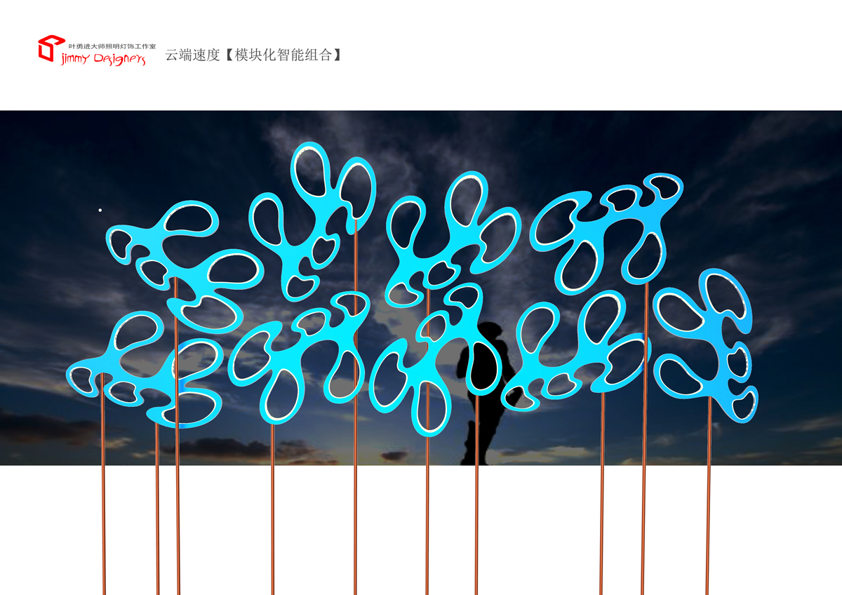 模塊化的重合與變化。它有趣的是可以根據(jù)地段、區(qū)域及不同的地況位置,設(shè)置不同的模塊組合,可以有變化又在統(tǒng)一元素當(dāng)中展現(xiàn)。是一個(gè)很好的組合造型 藝術(shù)燈具,以寓意著寧波快速發(fā)展的未來!