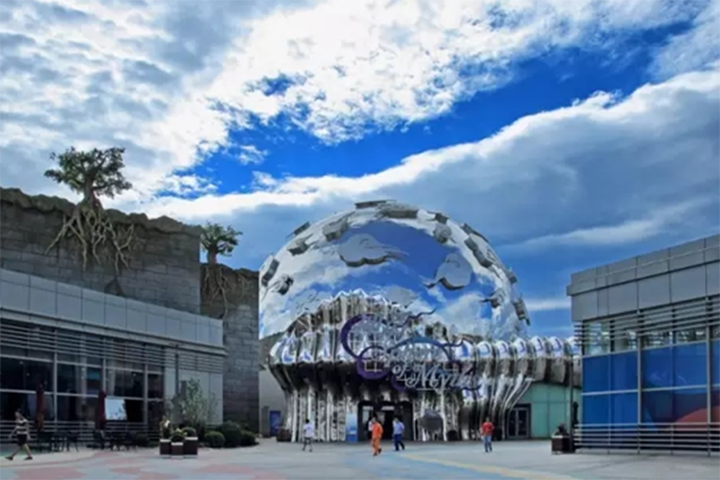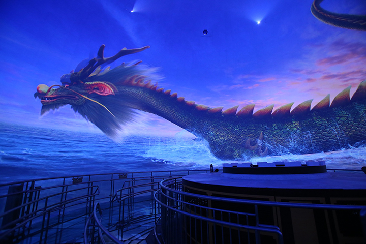 中華5000年的文化傳承和積淀,孕育出眾多廣為流傳的文化瑰寶?,F(xiàn)代主題公園就需要借助更先進(jìn)的影像技術(shù)應(yīng)用來完整詮釋文化精髓。深圳華僑城科技敏銳地捕捉到了這個(gè)趨勢,立足于中國傳統(tǒng)文化及北京地域文化等推廣,并將這些厚重的歷史故事精致巧妙地與現(xiàn)代科技融合在一起。協(xié)同巴可公司合作伙伴北京京廣華夏科技,一起經(jīng)過現(xiàn)場反復(fù)論證,在樂多港奇幻樂園中心建設(shè)了全球首創(chuàng)最先進(jìn)的大型室內(nèi)高科技娛樂項(xiàng)目——720度全景球體幕影院。該項(xiàng)目被媒體譽(yù)為最唯美“神話”的,外觀是一座巨大的布滿祥云圖案的銀色球體,內(nèi)部采用14組巴可HDF系列大型高清投影設(shè)備,結(jié)合各種特效,營造出720度全景包圍的震撼視覺空間。游客站在中央透明平臺(tái)上,被巨大的球幕畫面包圍,欣賞精彩的影片故事內(nèi)容,感受前所未有的視聽沖擊和震撼體驗(yàn)。