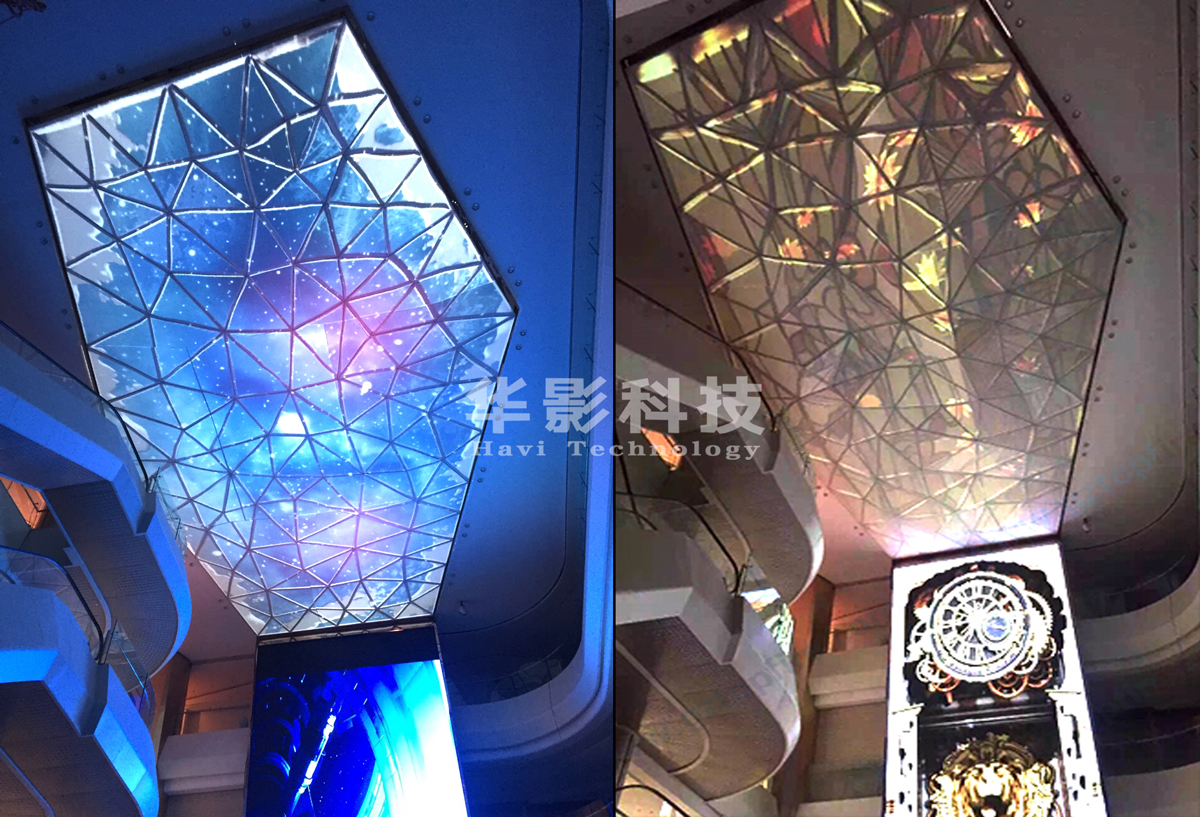 7臺12000流明、8臺7000流明投影燈融合方式投射。